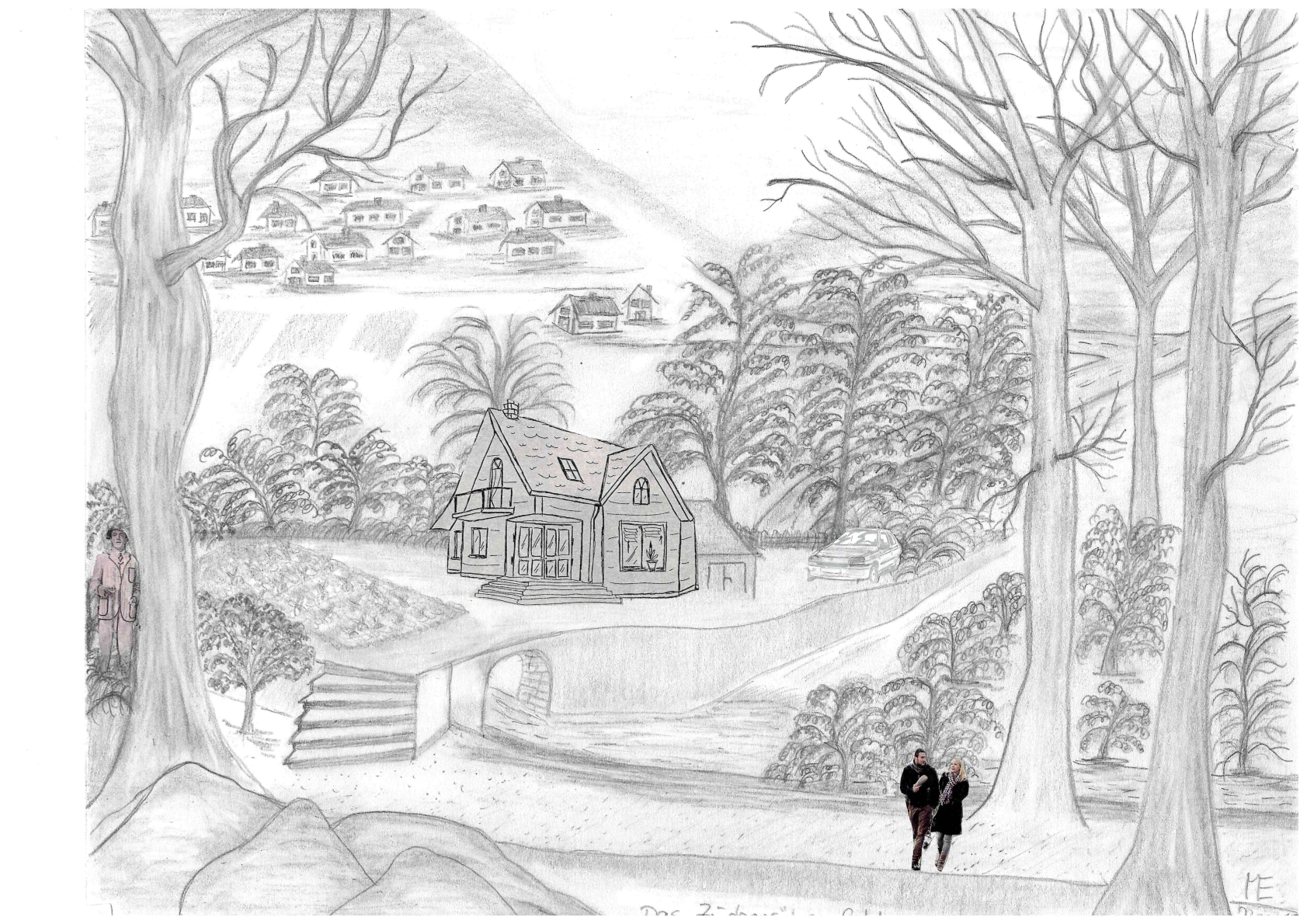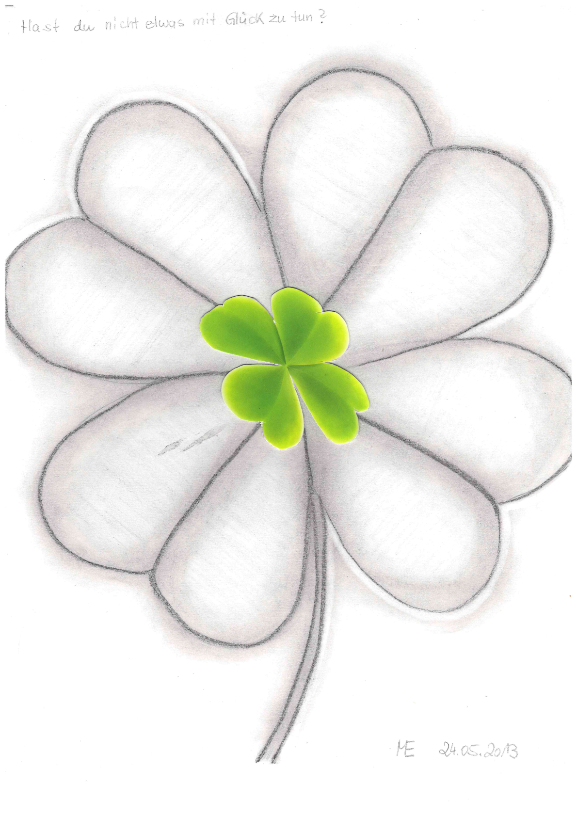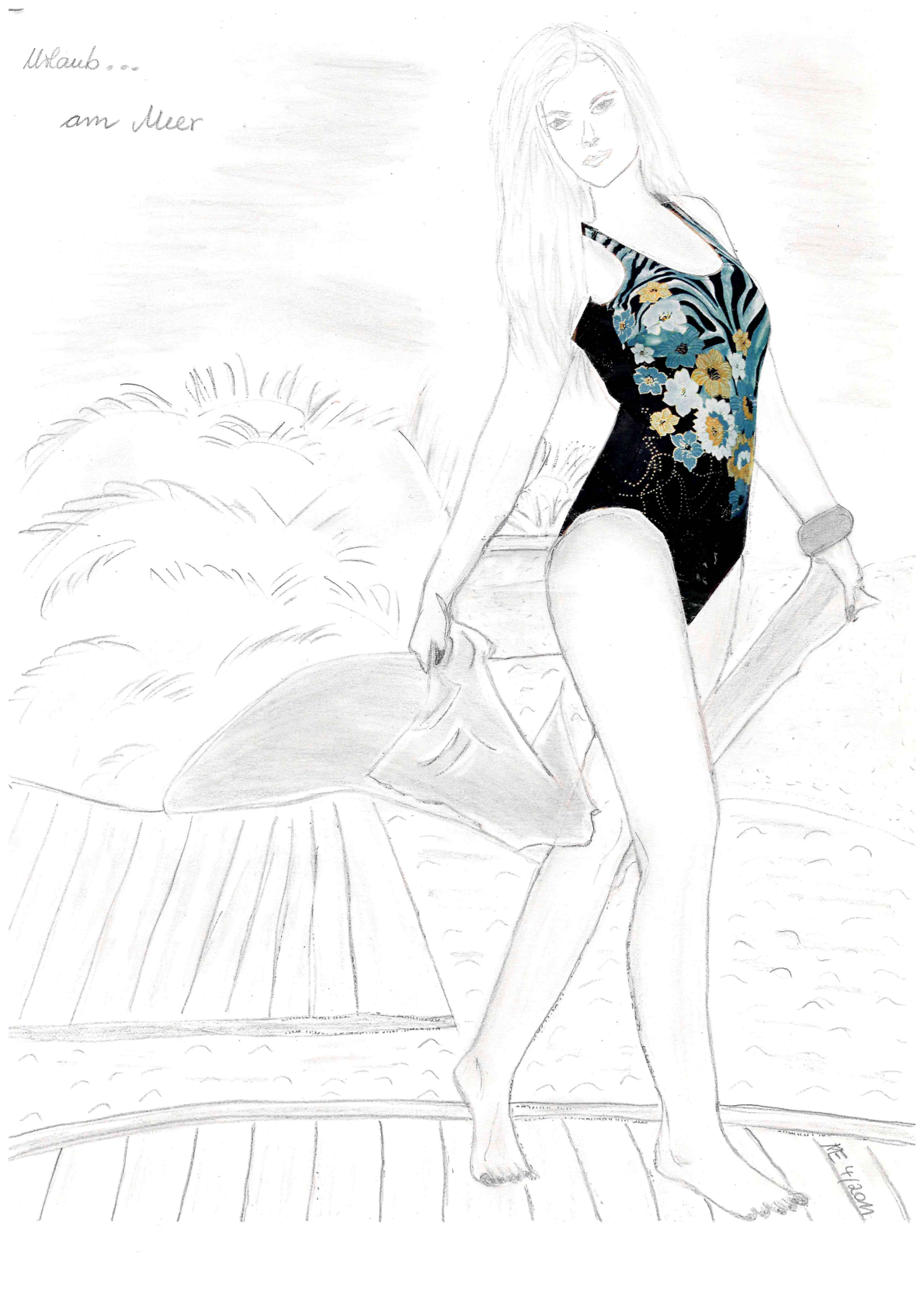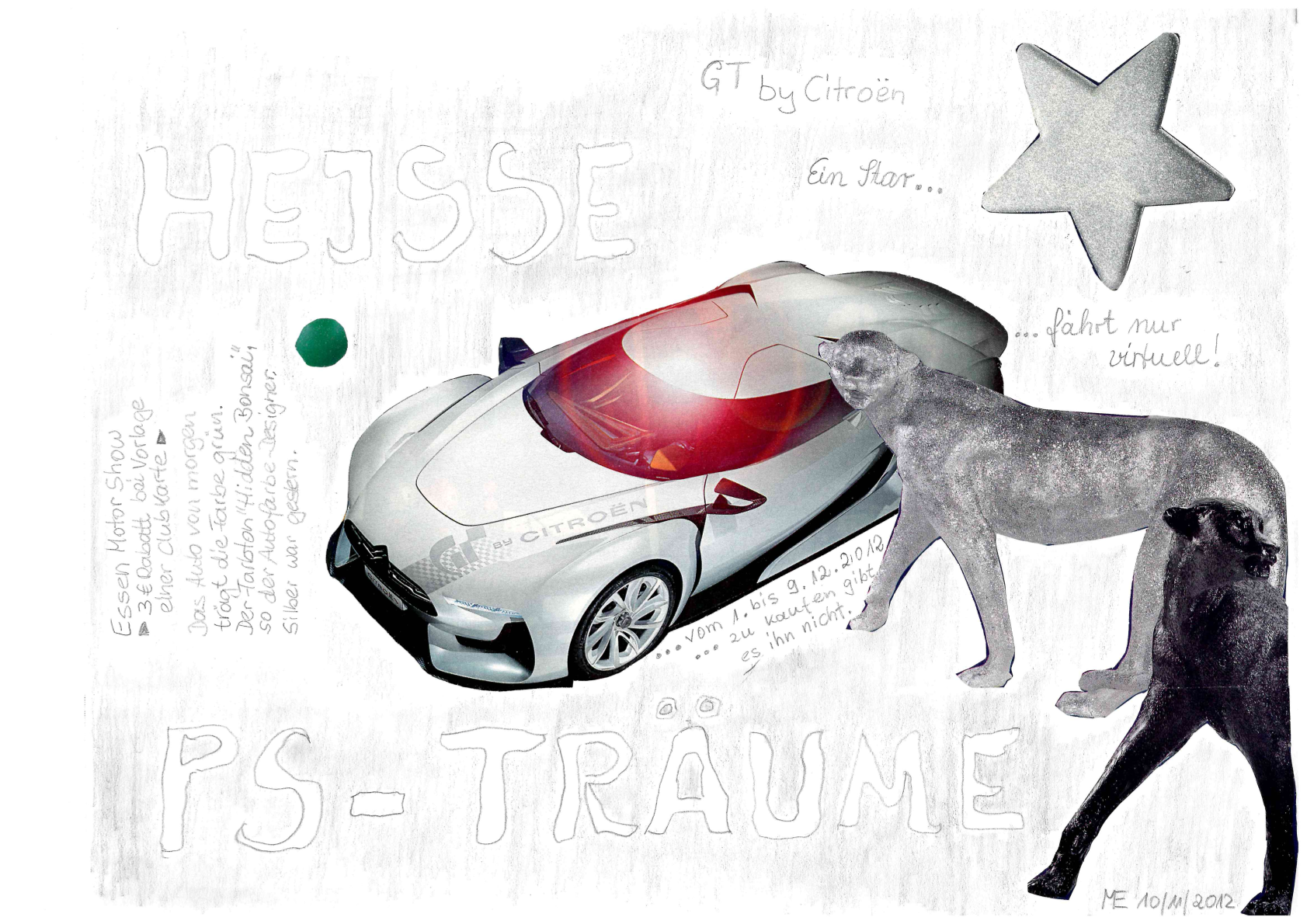 Zu meinen Bleistiftzeichnungen gehören auch Zeichnungen, die ich mit ausgeschnittenen Bildchen bestückt habe.