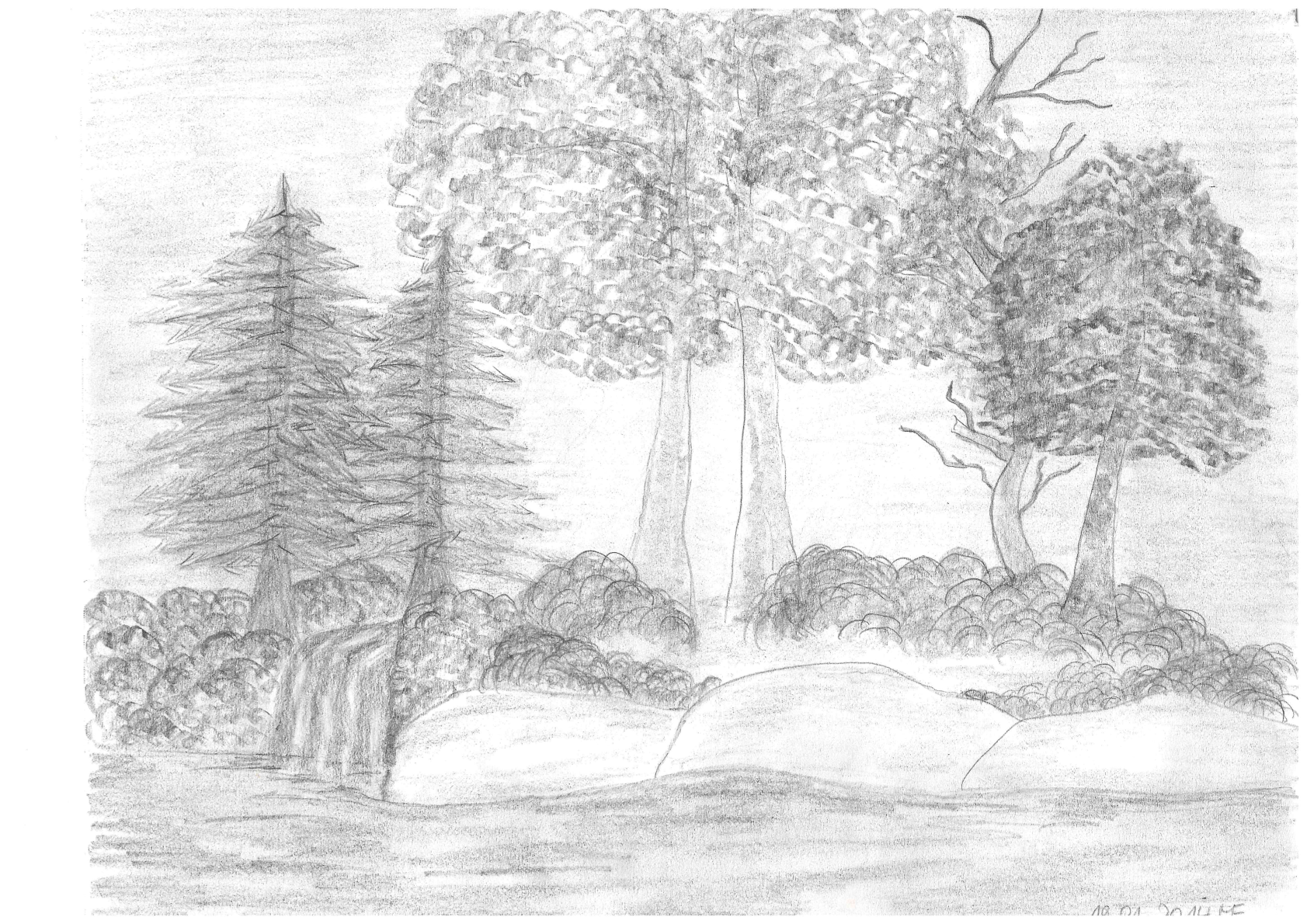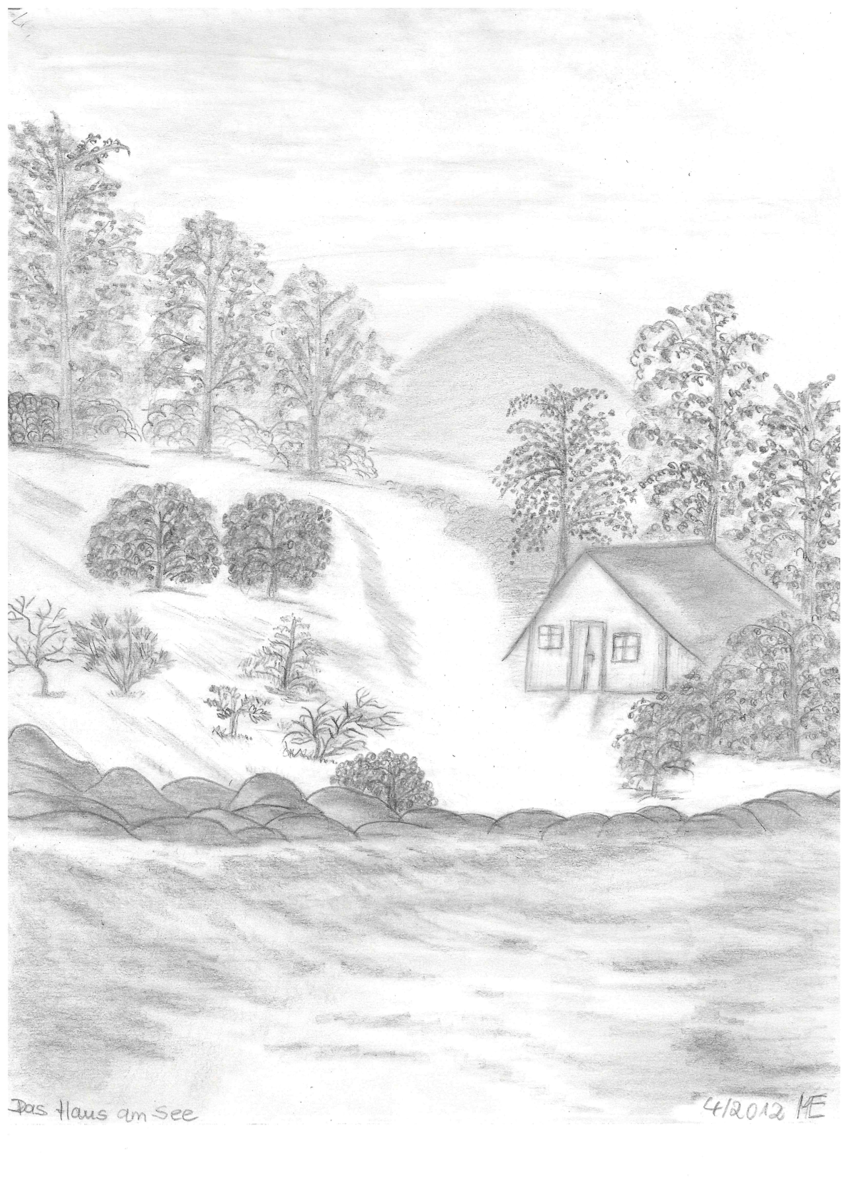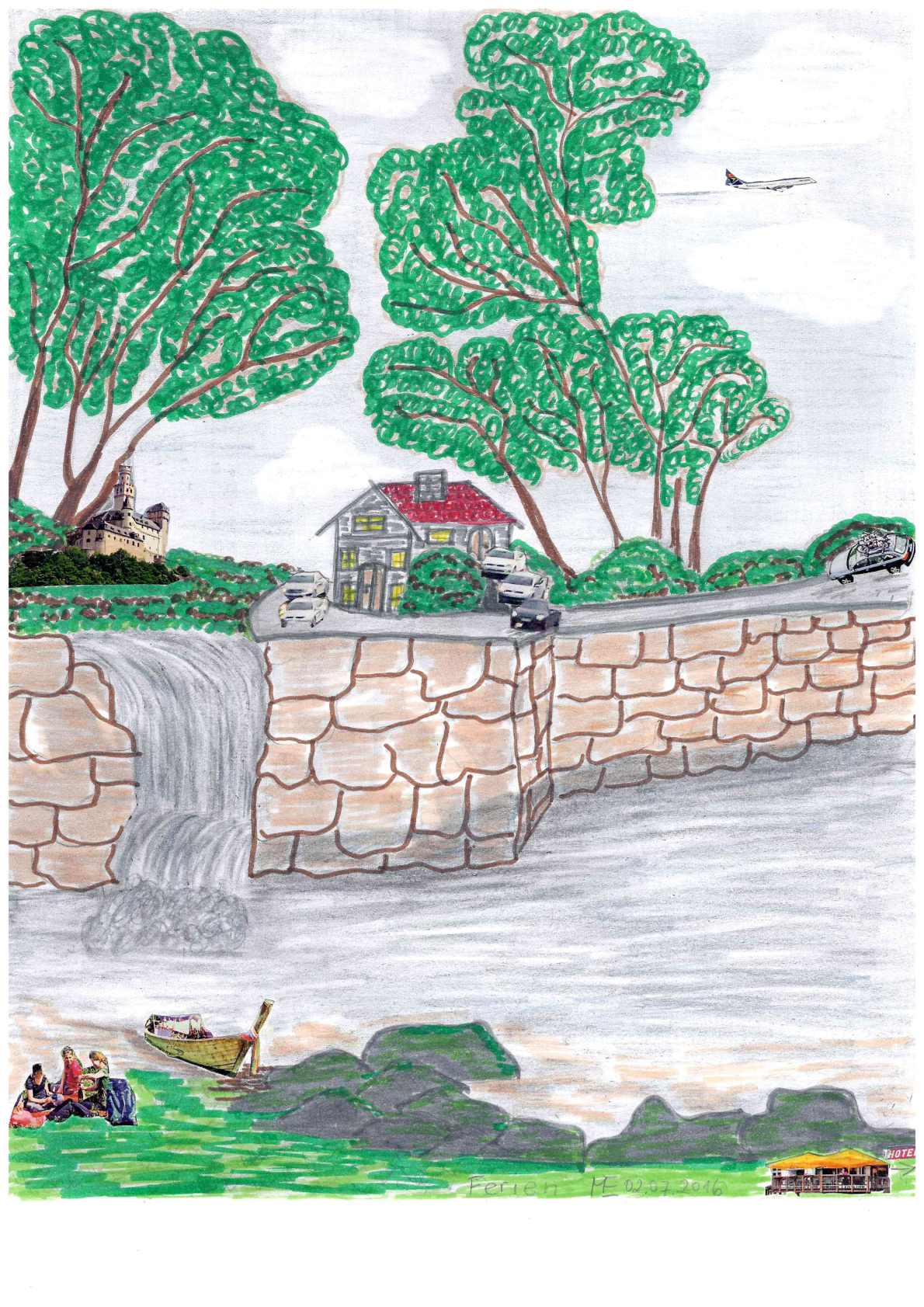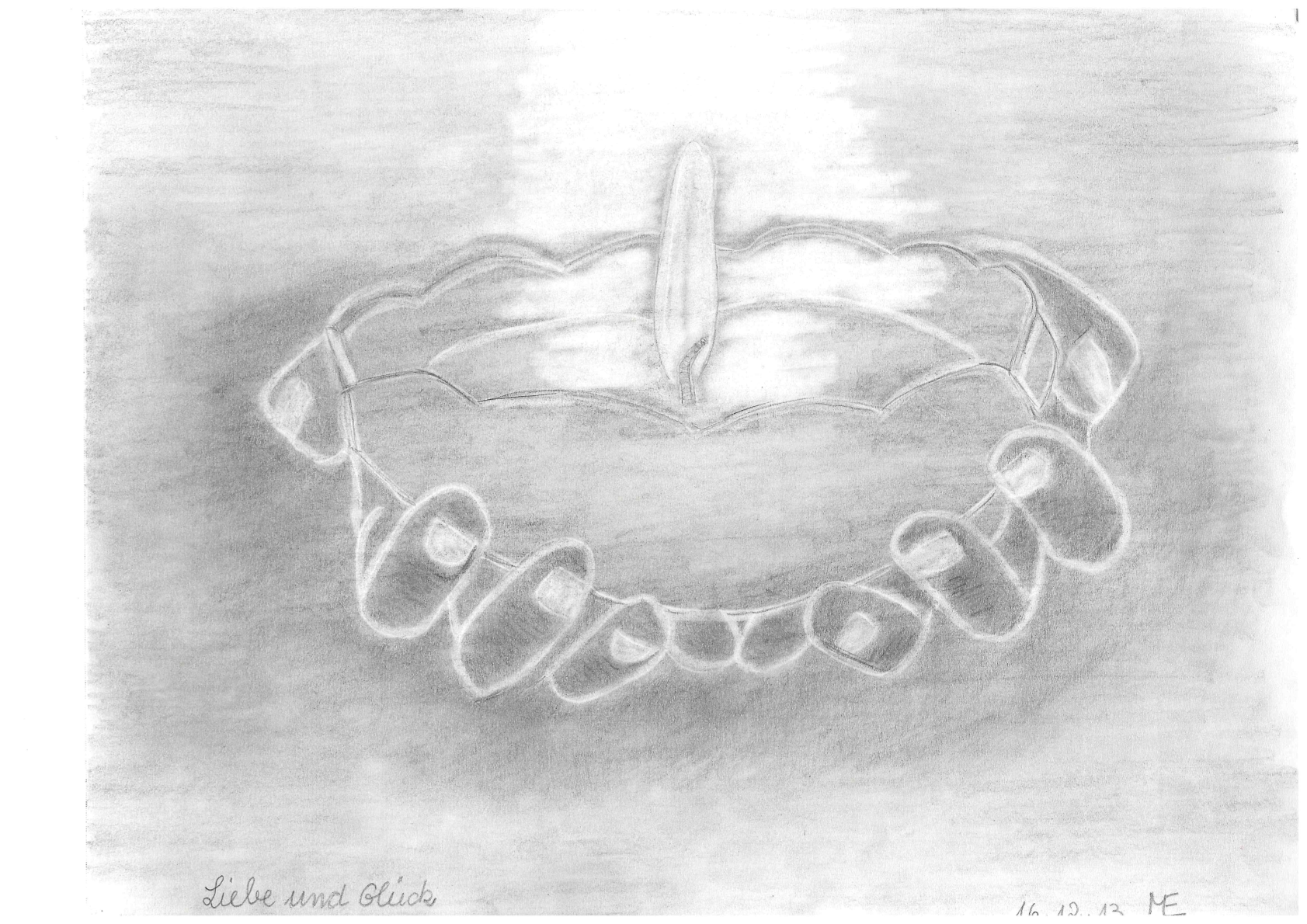 Zu meinen Bleistiftzeichnungen gehören auch Zeichnungen, die ich mit ausgeschnittenen Bildchen bestückt habe.