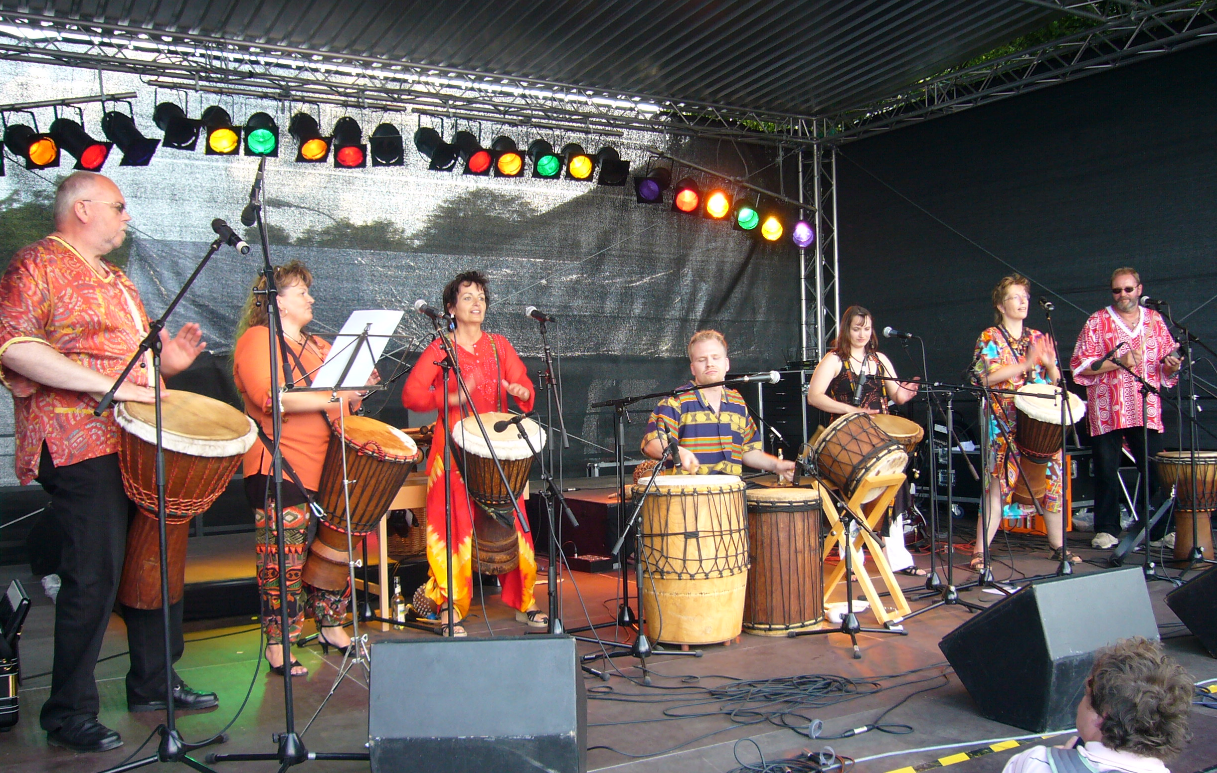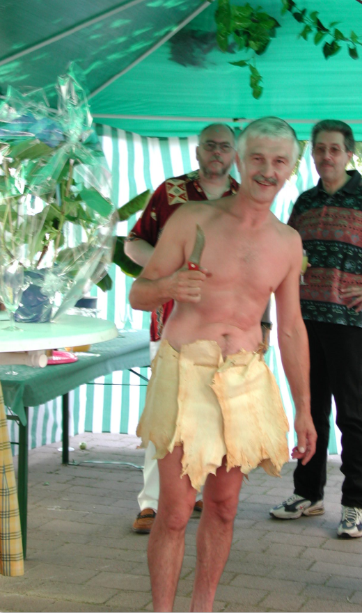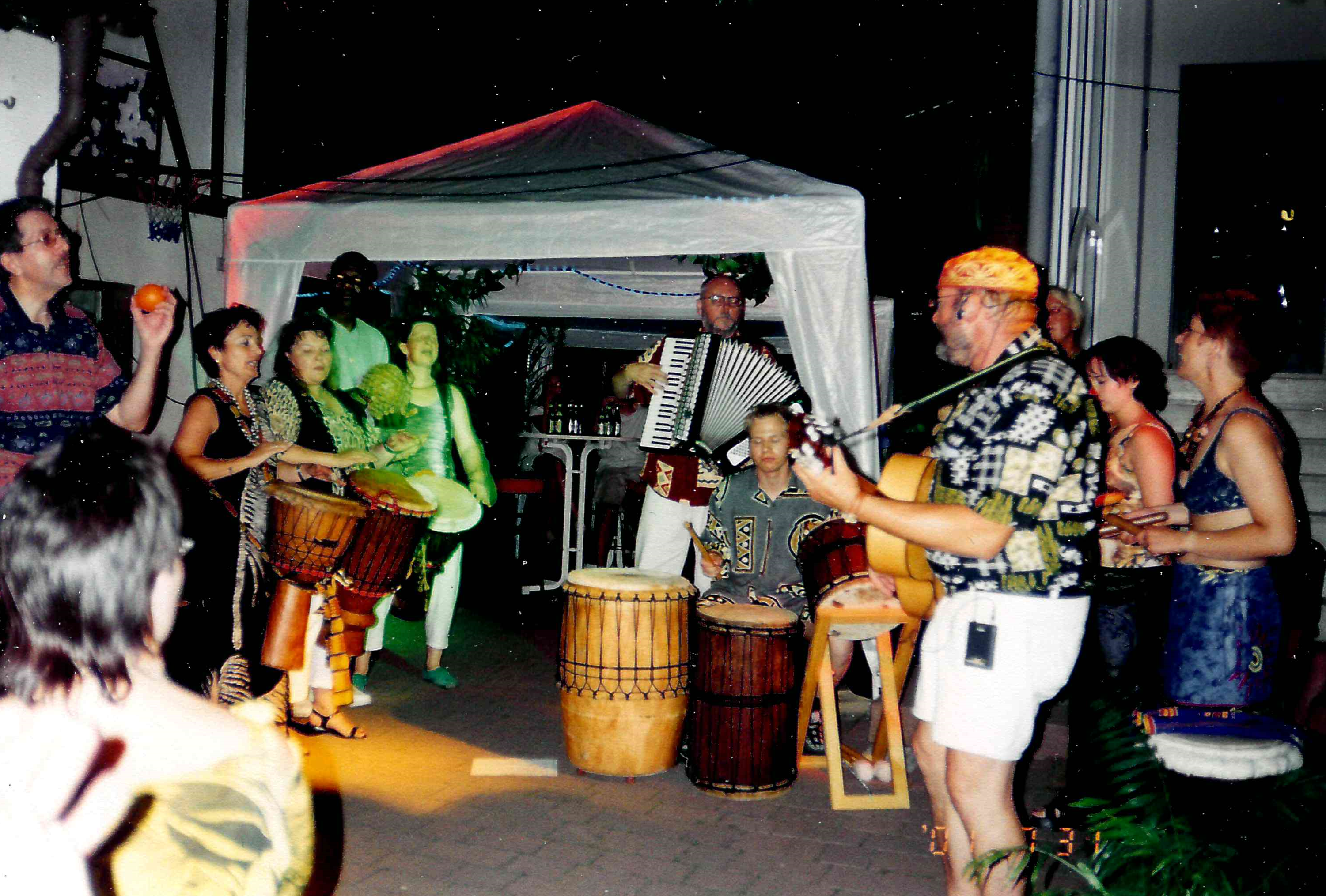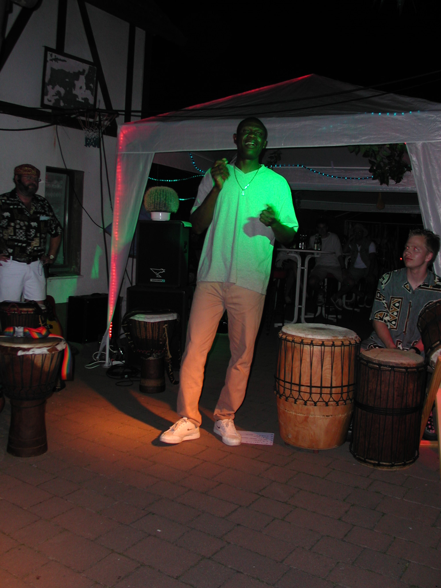 Eine Dschungelparty mit 68 Gästen, Familie, Bekannten einschl. der Band meines Mannes, der Männerchor, der Musikverein und unsere Trommelgruppe, die Afro-Percussion-Formation Dzigbo, fand in unserem Hof statt.