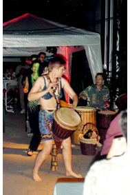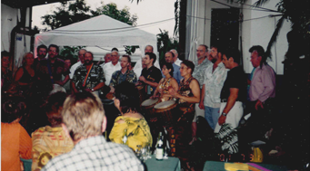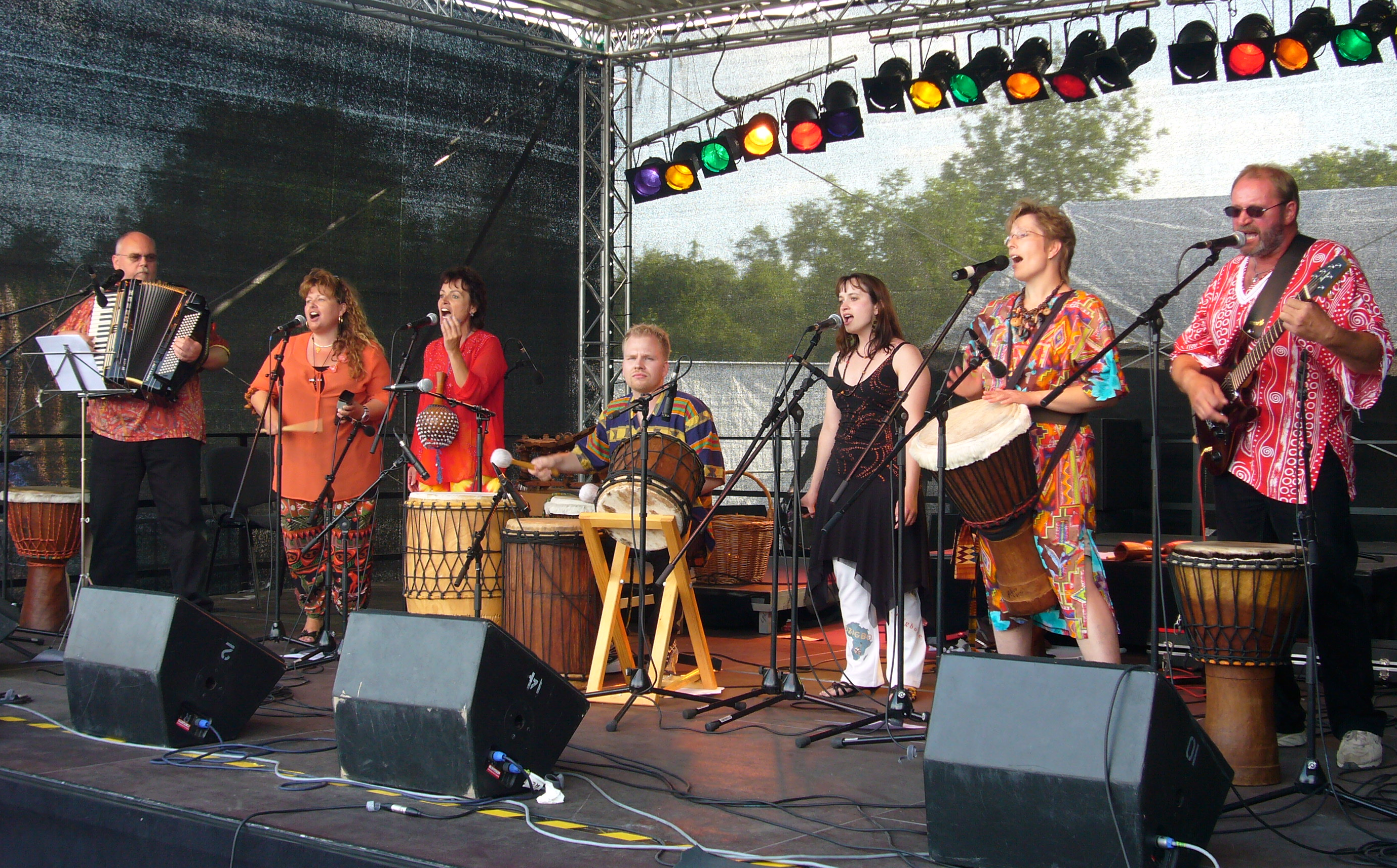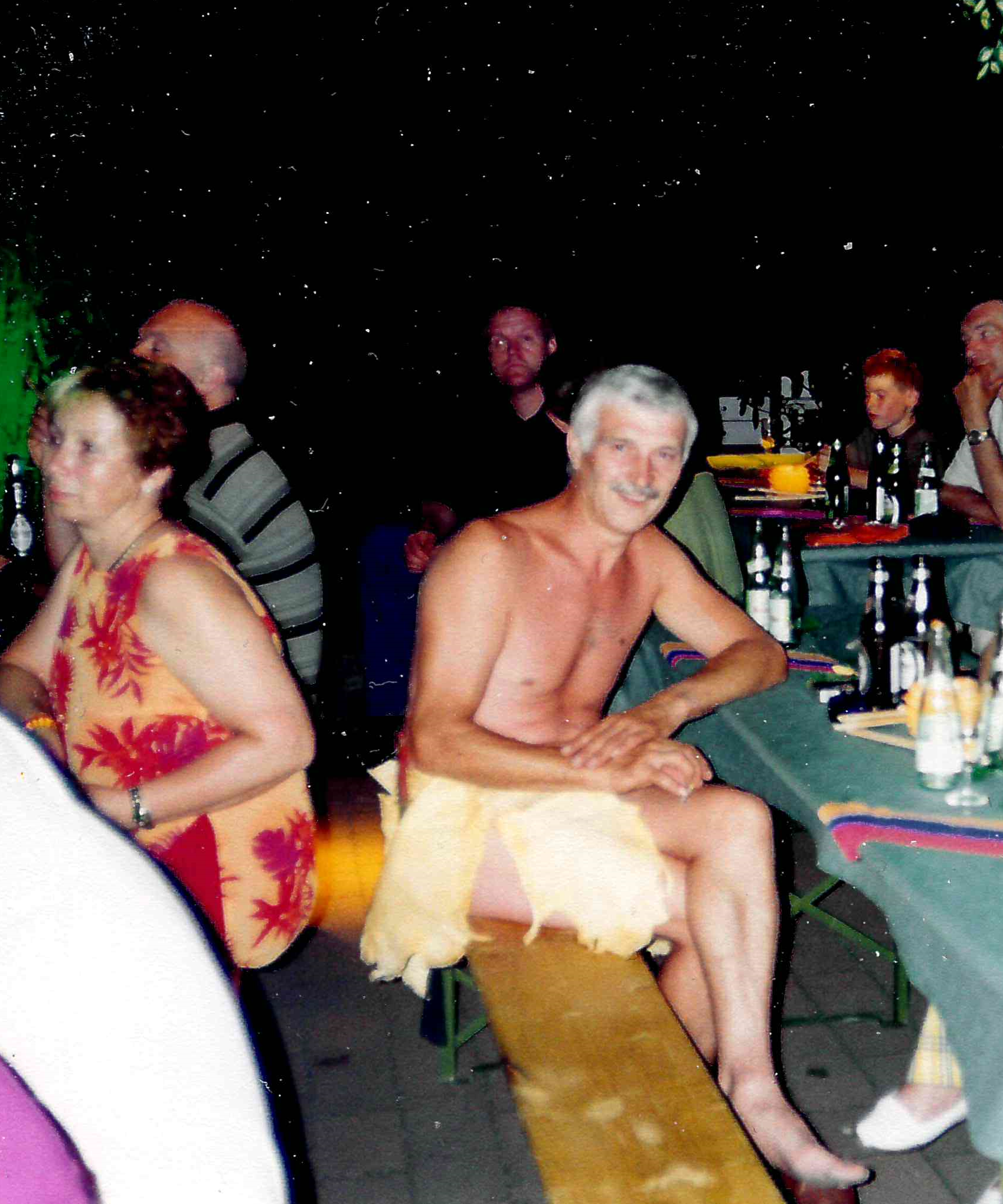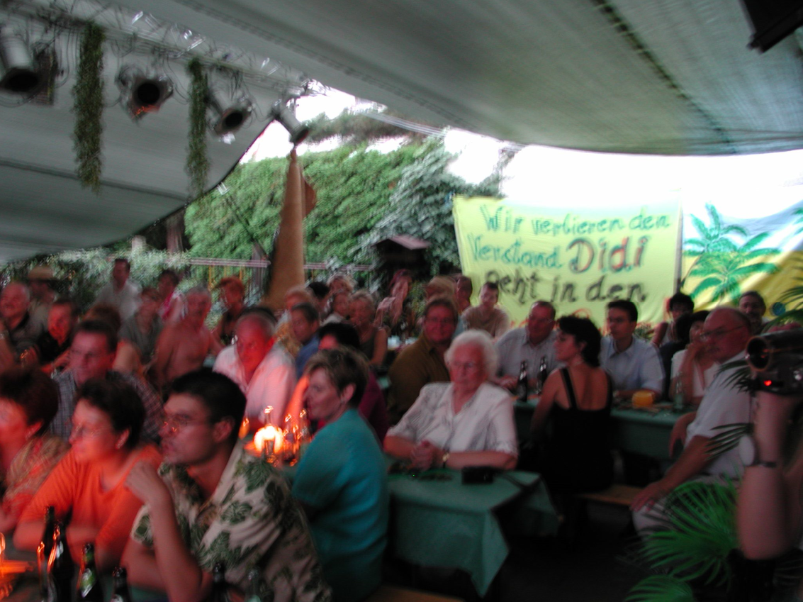 Eine Dschungelparty mit 68 Gästen, Familie, Bekannten einschl. der Band meines Mannes, der Männerchor, der Musikverein und unsere Trommelgruppe, die Afro-Percussion-Formation Dzigbo, fand in unserem Hof statt.