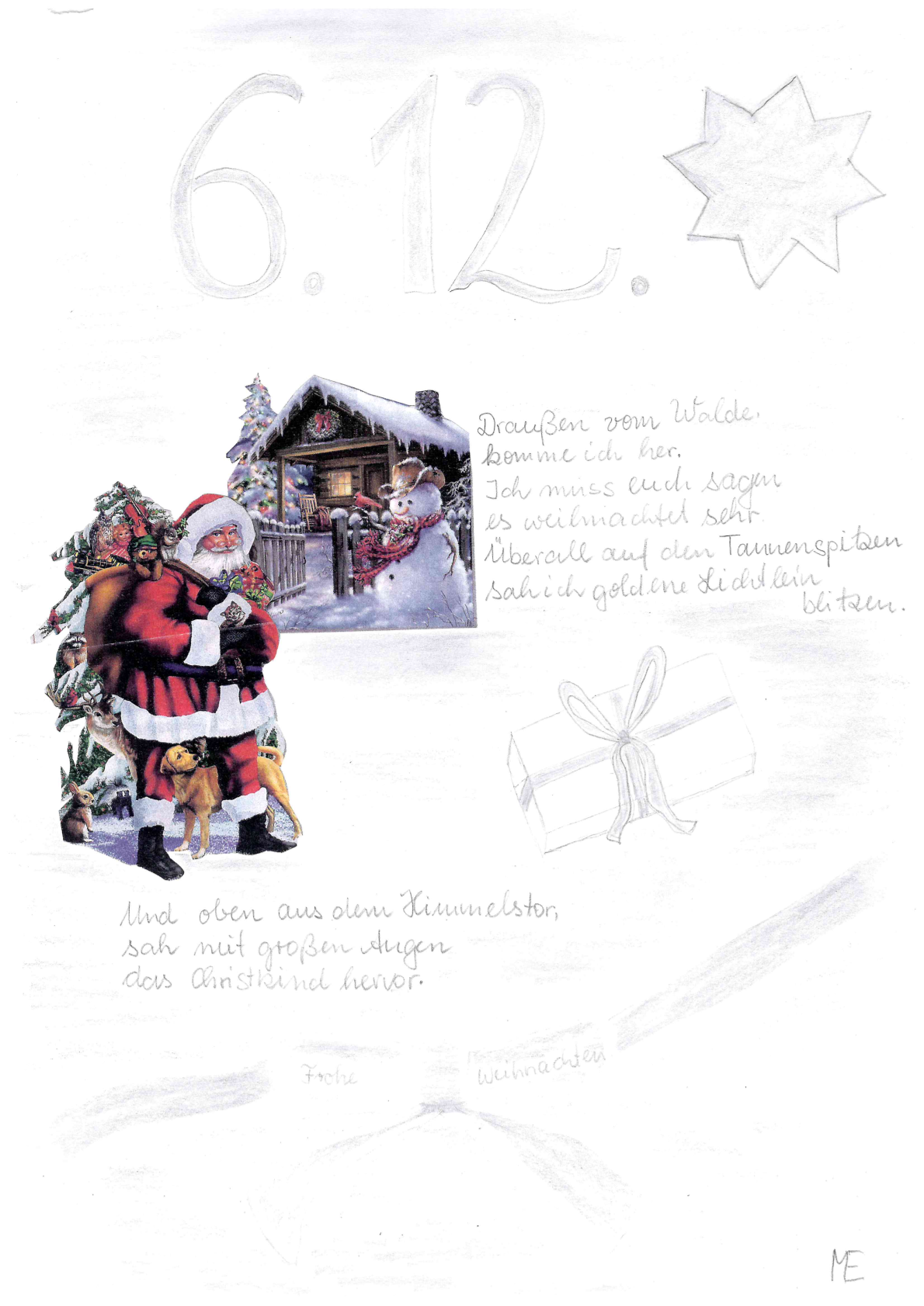 Zu meinen Bleistiftzeichnungen gehören auch Zeichnungen, die ich mit ausgeschnittenen Bildchen bestückt habe.